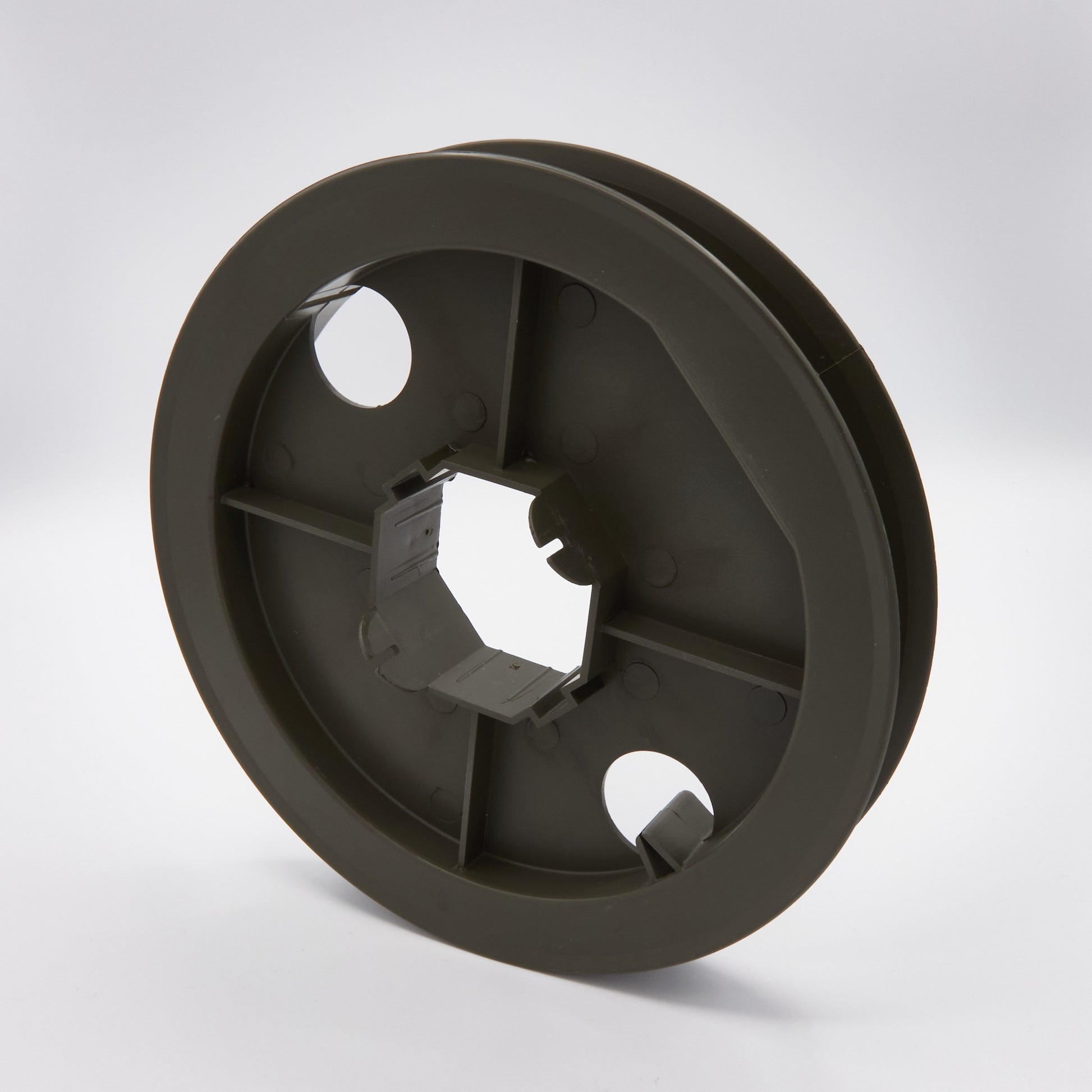 Verstellbare Gurtscheibe zur Aufnahme und Führung des Rollladengurtes auf 60 mm Achtkantwellen.